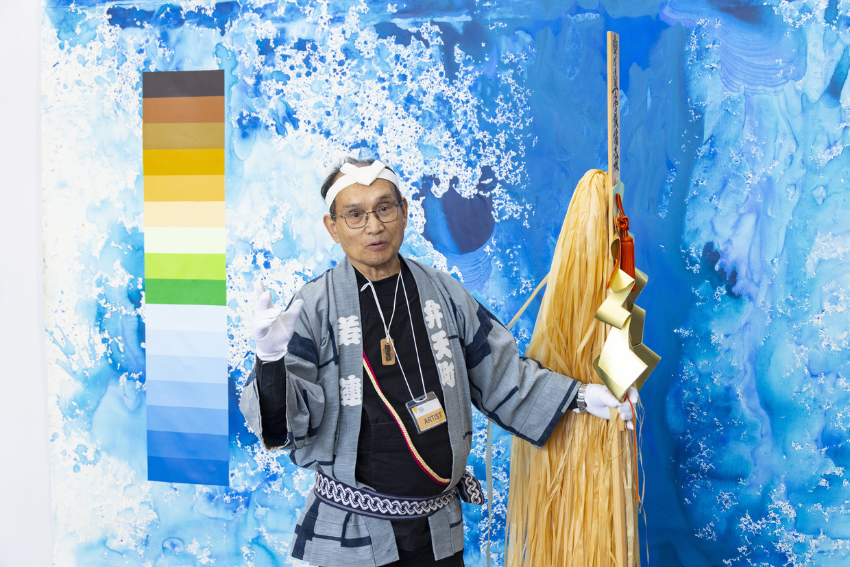宮坂了作は1950年に長野県諏訪市の米農家に生まれました。1974年にカリフォルニア芸術大学を卒業、帰国後は郷里で農業に従事する傍ら不動産業を営み、農業委員、木遣等伝統文化の継承など地域の活動にも熱心に取り組みながら創作活動を続けるユニークな経歴の持ち主です。