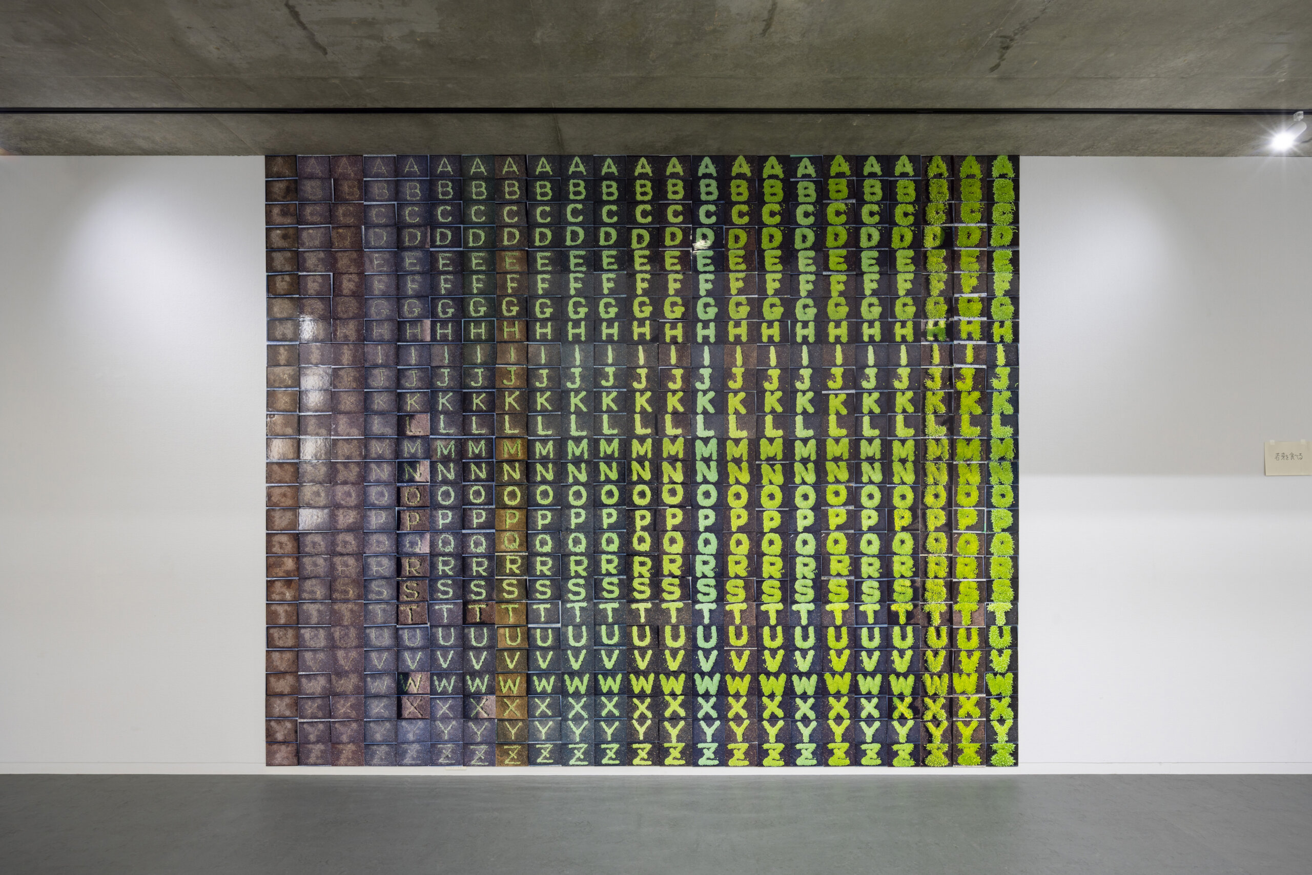 本展では、未公開作品を含む初期の《地図の絵画》や近年の《植物文字》に加え、昨年、越後妻有において田植えと稲刈りの時期に描かれた新作を公開いたします。ゲストキュレーターの椹木野衣氏は「宮坂の美術家としての活動は一貫して、「Art(美術)」と「Agriculture(農業)」のふたつの「A」を「Revolutionary(価値転換的)」に結びつける「Techne(技術)」からなっており、その意味で私たちの「ART」をめぐる価値観に新たな転換をもたらすもの」と語り、今回の展示タイトル「ART」へとつながります。