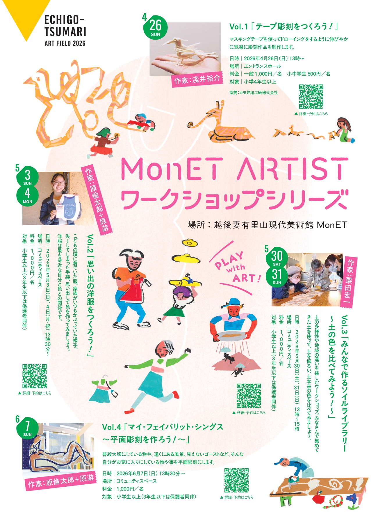 共通チケットで鑑賞可能な作品・施設では、季節に応じた企画展やイベント、ワークショップを開催します。旅の予定にあわせて、アーティストによるプログラムや地域をより深く知るイベントにもぜひご参加ください。※プログラムの詳細は随時更新いたします。