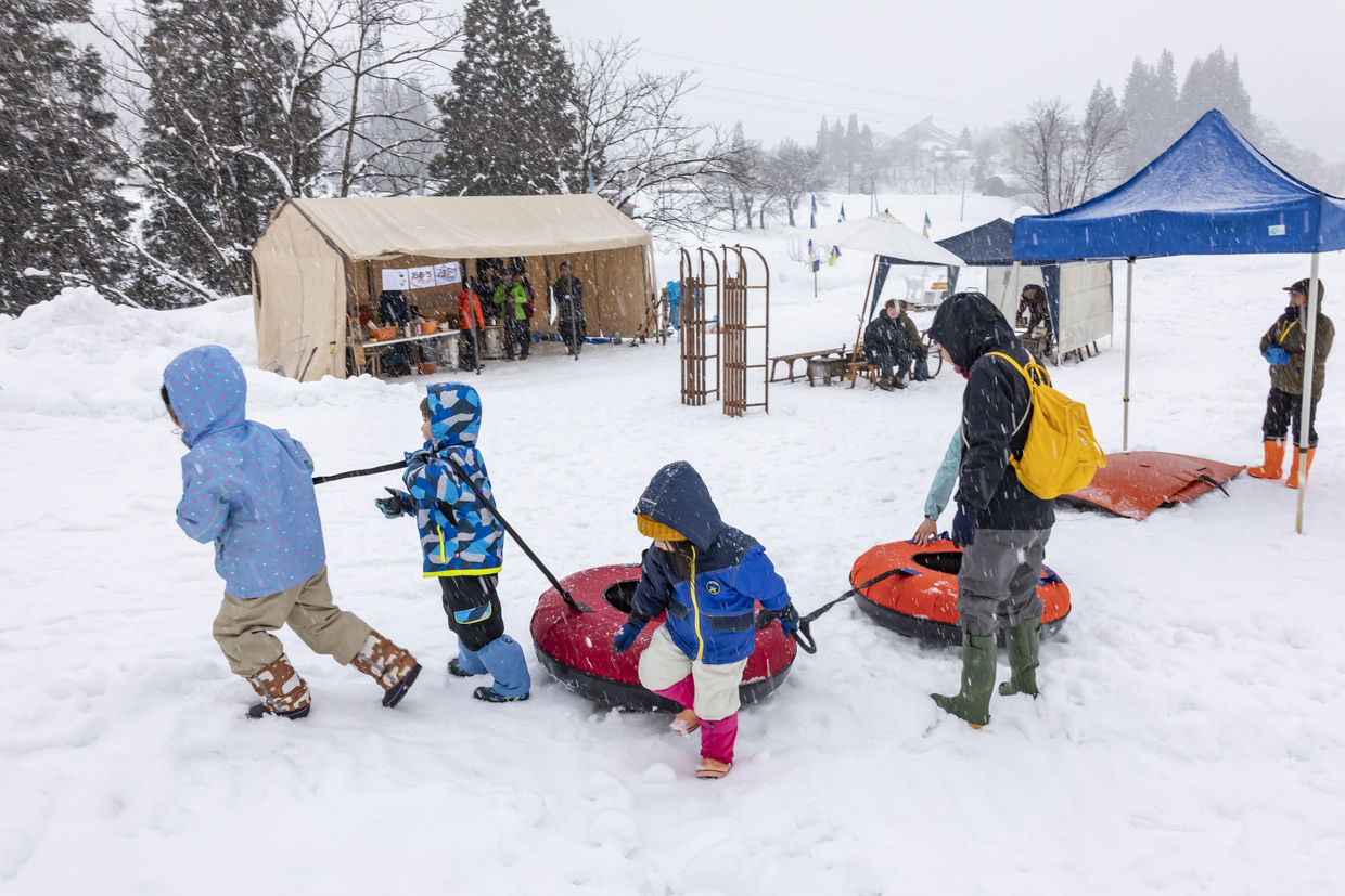 自然の傾斜を利用したスノーチューブやバナナボート、小さなお子様向けには手押しのそりなどを体験できる、雪の遊園地が現れます。疲れたら焚火でコーヒーを入れたり、七輪でお餅を焼いたり、雪上のアクティビティを満喫できます。