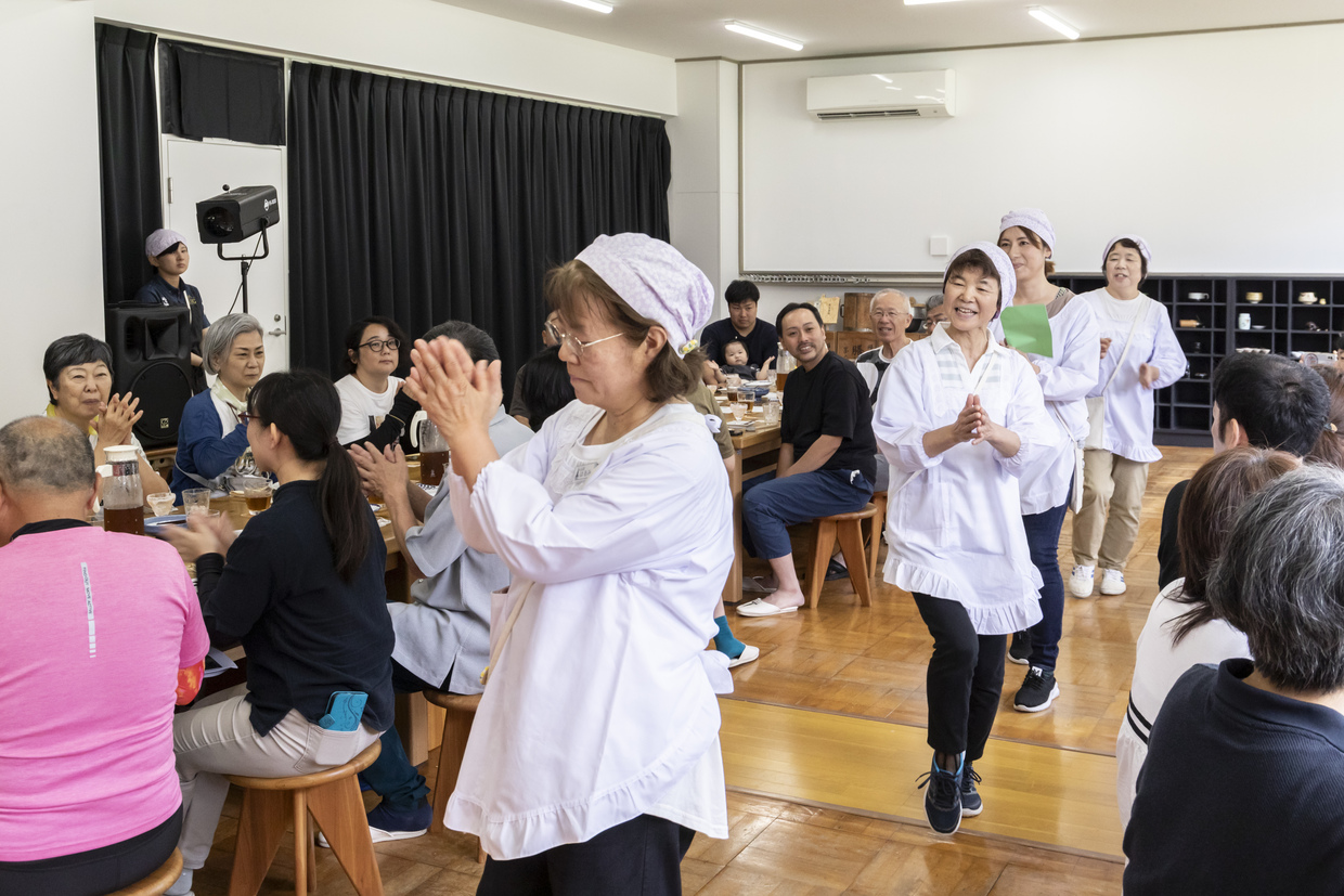 地元津南のお母さんたち・女衆(おんなしょ)が主演の演劇レストランです。地場産食材をふんだんに使ったコース料理を食べながら、女衆のお芝居とおもてなしを楽しみ、地域の魅力を堪能できます。お料理は津南産コシヒカリの塩おにぎり、朝採れとうもろこしのスープ、つなんポークのローストポークなど、豪雪地の雪解け水に育まれた栄養たっぷりのお米や野菜を、素材本来の味を引き出す優しい味付けでご提供します。豪雪地に育まれた食文化を地元の女衆によってお届けする、ここでしかできない体験をお楽しみください。