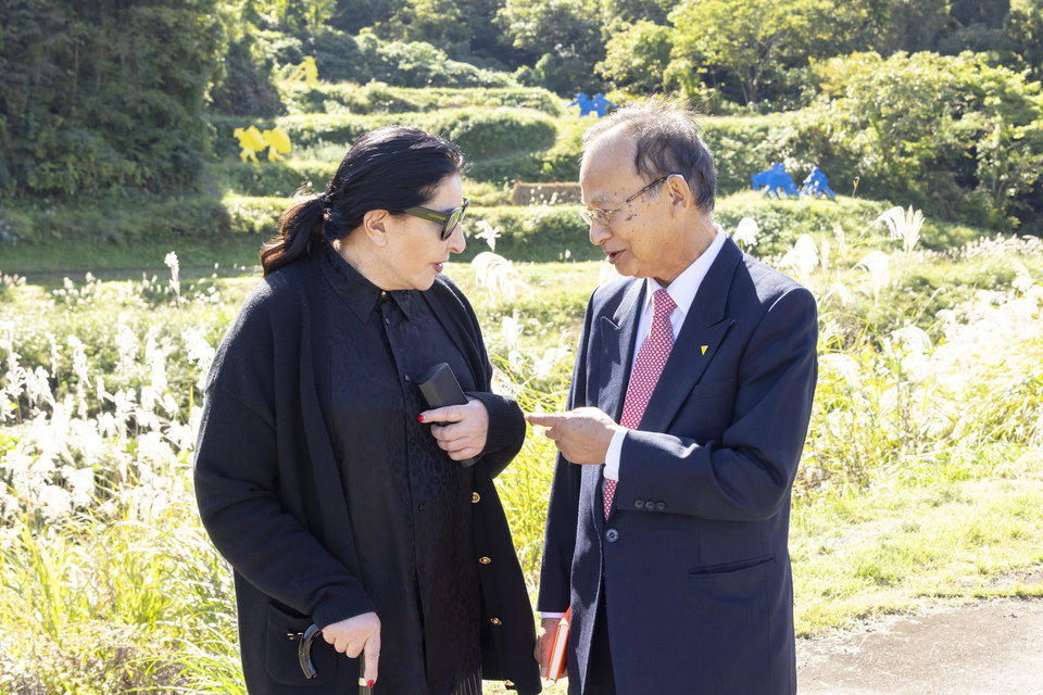 今回、マリーナ・アブラモヴィッチが高松宮殿下記念世界文化賞(※1)を受賞し、授賞式に来日することを機に、「夢の家」への訪問が実現した。長年の付き合いとなる芸術祭総合ディレクターの北川フラムとも久々の再会となり、越後妻有で2人が顔を合わせる貴重な機会となった。