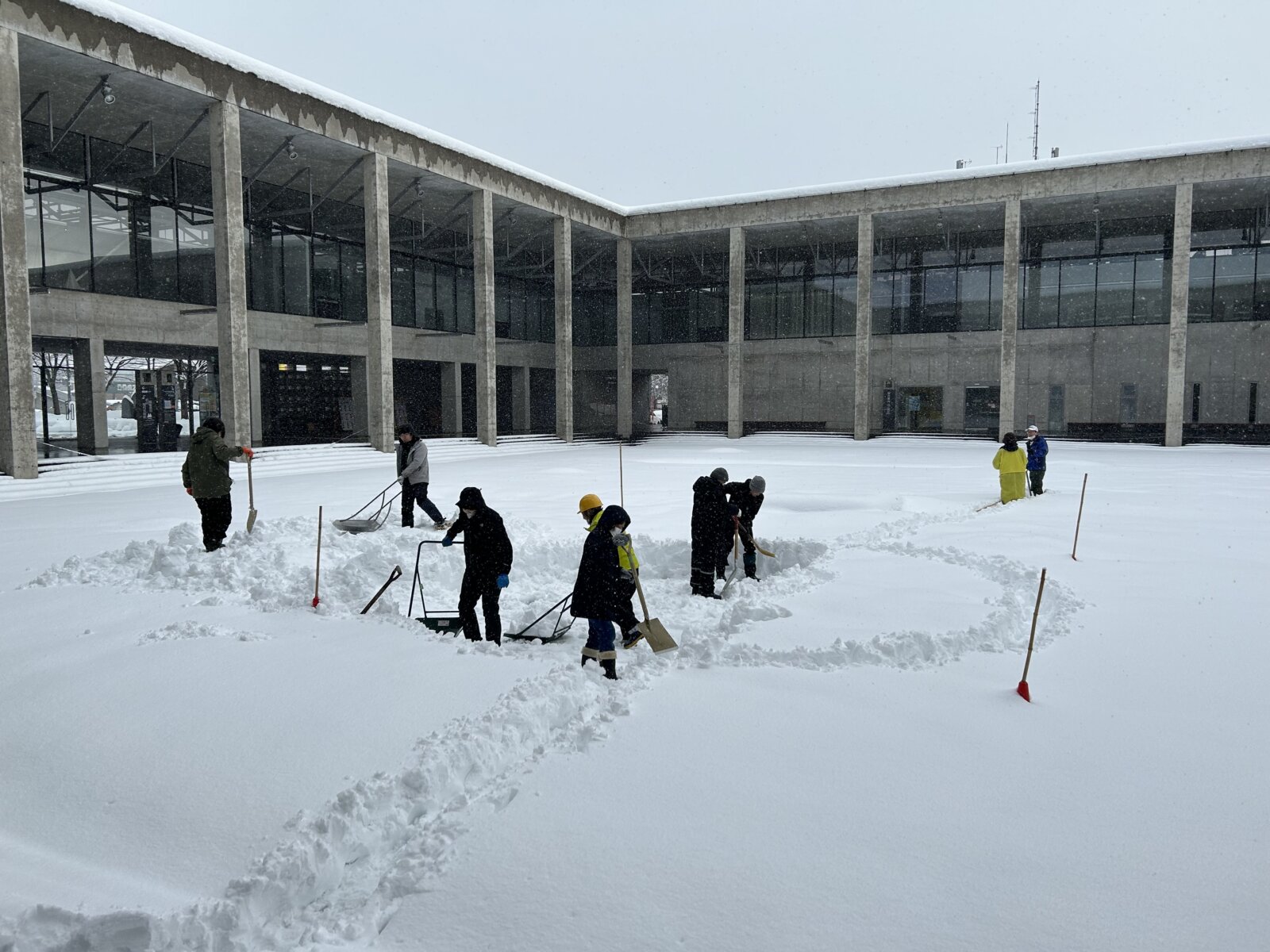 冬の展覧会制作の様子。作家とこへび隊や地元の方々と一緒につくりあげていく。