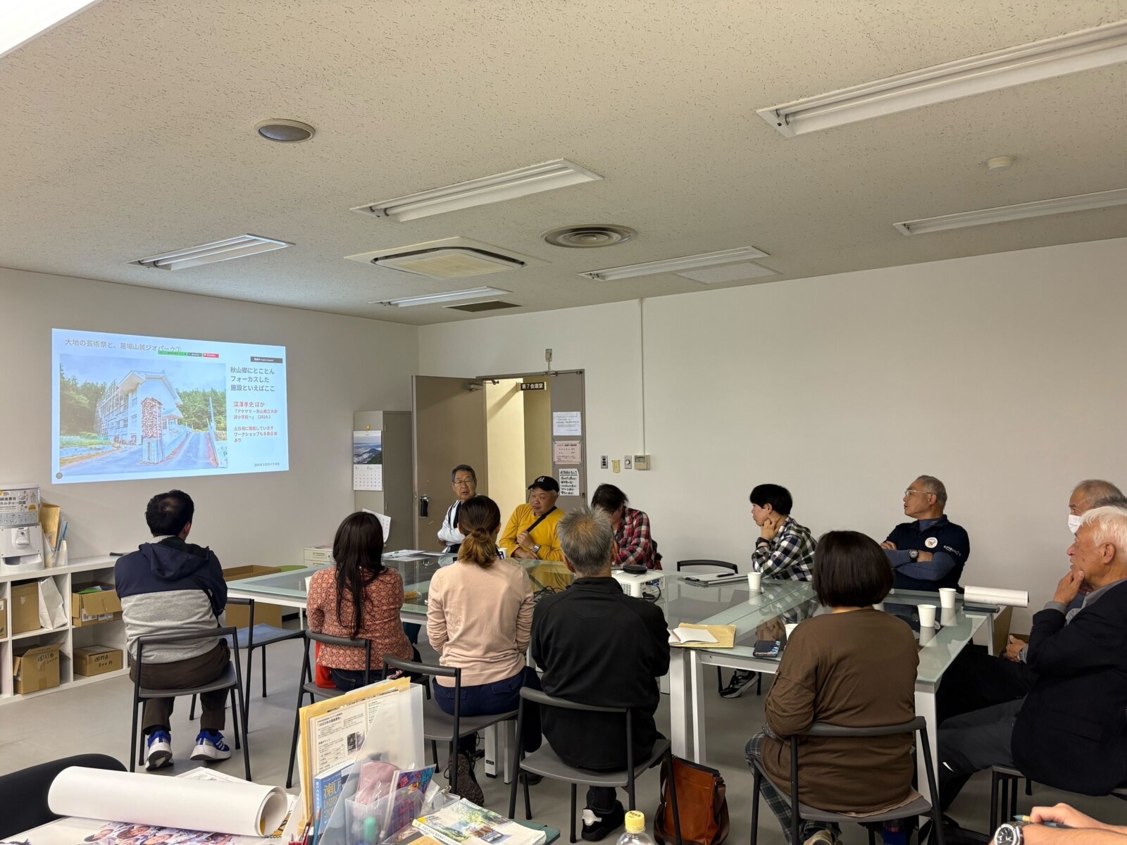 とはいえ、作品の解説や大地の芸術祭のあゆみなど、芸術祭の基本的な知識は知っておかなければなりません。月に一度、オフィシャルガイドの研修会を開催し、みんなで勉強します。主なテーマは作品や地域についてのレクチャーや、ガイドに役立つ知識の共有、オフィシャルツアーの振り返りと意見交換。皆さんとても熱心で研修の終了予定時刻を過ぎることも。