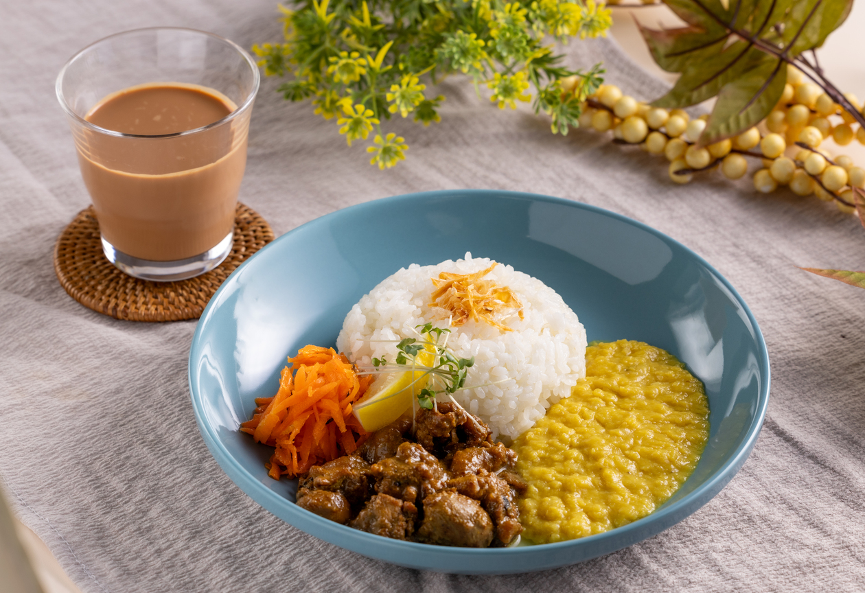 【カフェメニュー】営業時間:11:00~19:00 L.O・チャドカンのチキンカレープレート、チャイ・妻有ビール・樽生クラフト・ソフトクリーム:バニラ、越後妻有の雪下にんじんソフト(春~秋)、濃厚ショコラ(冬)・おつまみ:妻有茶豆の塩ゆで、地元野菜の漬物、ソーセージ盛り合わせ、フライドポテト ほか・ドリンク各種※季節により変更になる場合あり